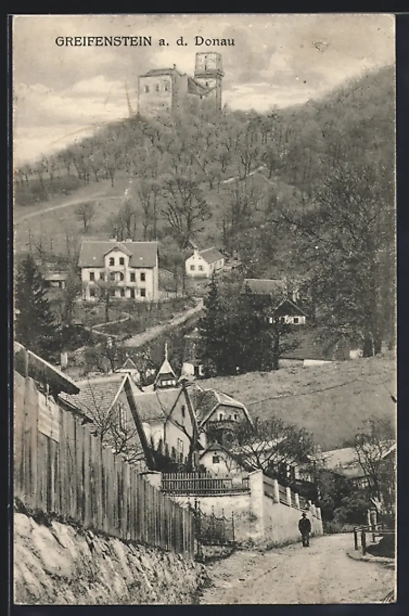 AK Greifenstein a. d. Donau, Ortspartie mit Burgruine