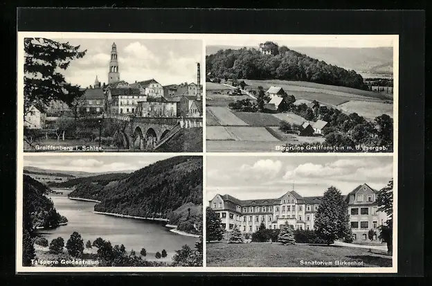 AK Greiffenberg, Ortspartie, Burgruine, Talsperre Goldentraum