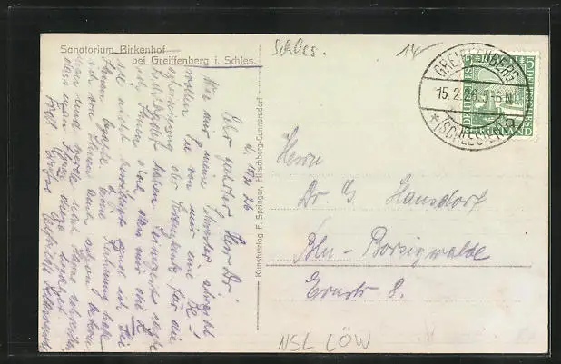 AK Greiffenberg i. Schles., Sanatorium Birkenhof