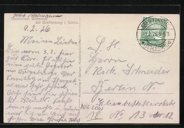 AK Greiffenberg i. Schles., Sanatorium Birkenhof