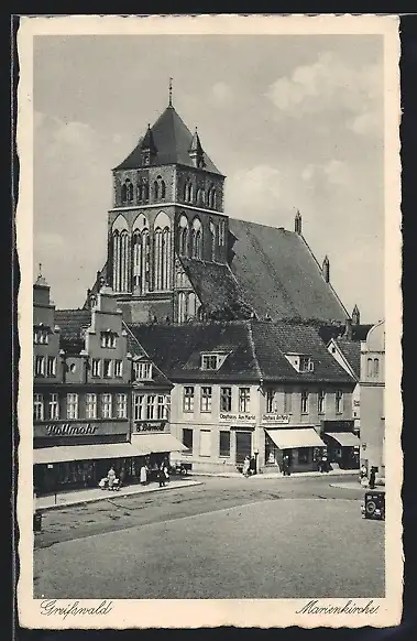 AK Greifswald, Blick vom Markt zur Marienkirche