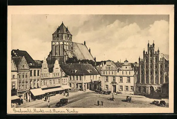 AK Greifswald, Markt mit Marienkirche