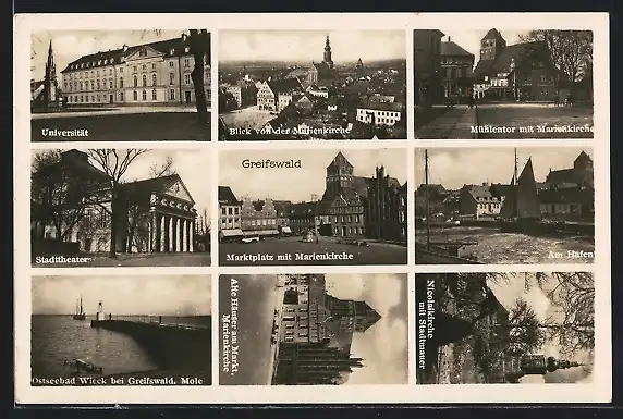 AK Greifswald, Universität, Mühlentor mit Marienkirche