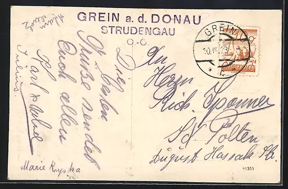 AK Grein a. d. Donau, Panorama mit Donaupartie