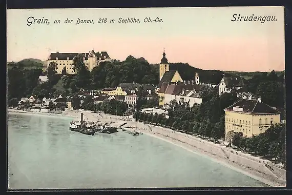 AK Grein an der Donau, Flusspartie mit Strudengau