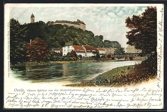 AK Greiz, Oberes Schloss von der Heinrichstrasse
