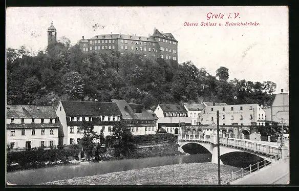 AK Greiz i. V., Oberes Schloss und Heinrichsbrücke