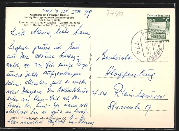 AK Gremmelsbach bei Triberg, Gasthaus und Pension Rössle