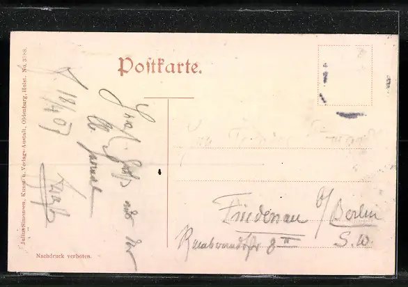 alte Ansichtskarte, gelaufen 1907, Briefmarke entfernt, guter Zustand