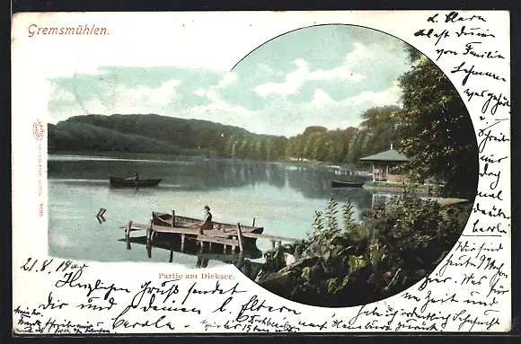 AK Gremsmühlen, Partie am Diecksee mit Booten
