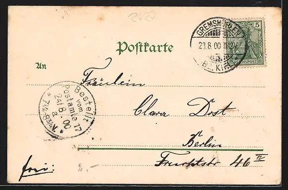 alte Ansichtskarte, gelaufen 1900, guter Zustand