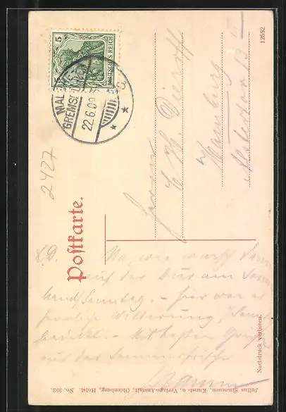 alte Ansichtskarte, gelaufen 1909, Eckbug re. oben, sonst guter Zustand