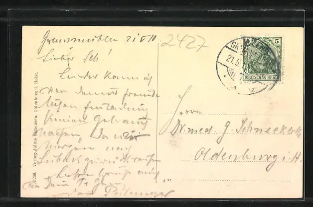 gelaufen 1910, Eckknick oben rechts, sonst guter Zustand