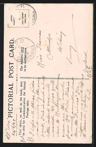 gelaufen 1908, Eckknick unten li., Briefmarke entfernt, guter Zustand