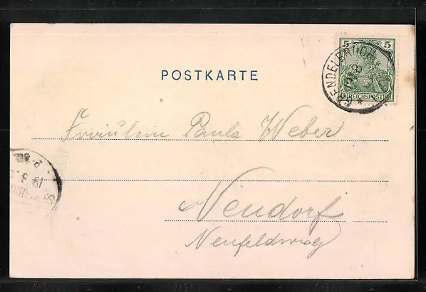 alte Ansichtskarte, gelaufen 1901, Stempelspur, guter Zustand