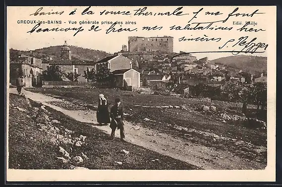 AK Gréoux-les-Bains, Vue générale prise des aires