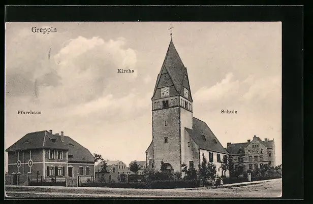 AK Greppin, Kirche mit Pfarrhaus und Schule