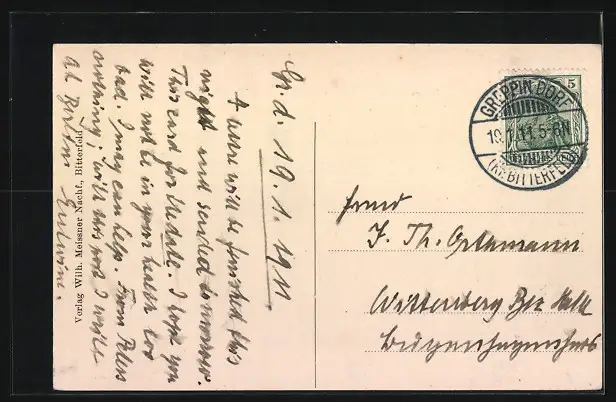 alte Ansichtskarte, gelaufen 1911, Stempelspur, guter Zustand