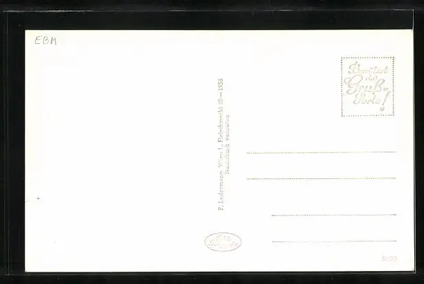 Personenbezogene Daten auf der Rückseite der Karte wurden durch blauen Textmarker unkenntlich gemacht. Die blauen Stellen sind auf die Vorderseite durchgeweicht und wirken sich negativ auf das Postkartenfoto aus