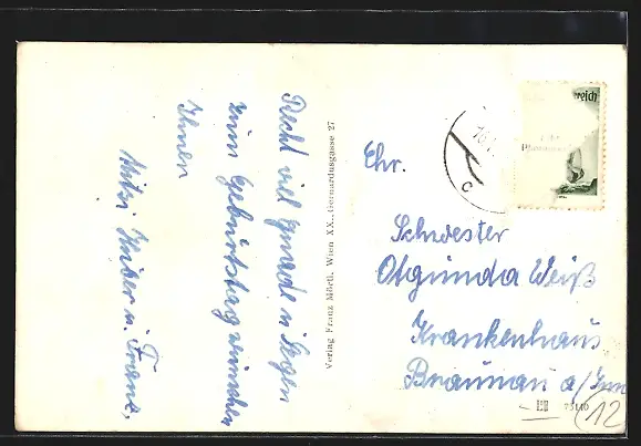 alte Ansichtskarte, gelaufen, Briefmarke entfernt, Eckknick unten li., guter Zustand