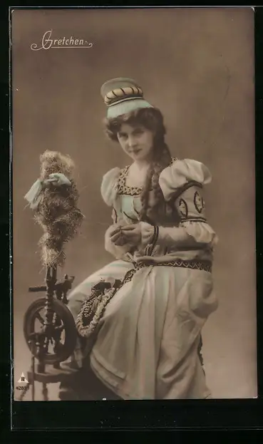 AK Gretchen mit Spinnrad, Faust
