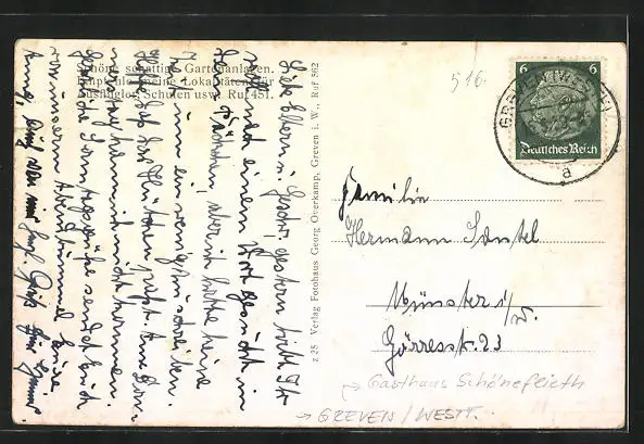 AK Greven /Westf., Gasthaus Schöneflieth