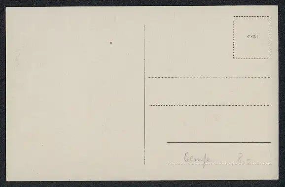 Personenbezogene Daten auf der Rückseite der Karte wurden durch blauen Textmarker unkenntlich gemacht. Die blauen Stellen sind auf die Vorderseite durchgeweicht und wirken sich negativ auf das Postkartenfoto aus
