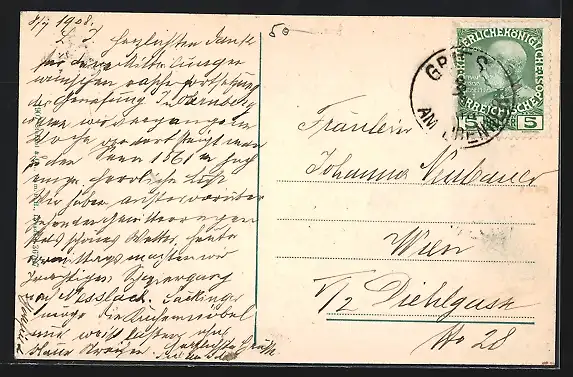alte Ansichtskarte, gelaufen 1908, Stempelspur, guter Zustand