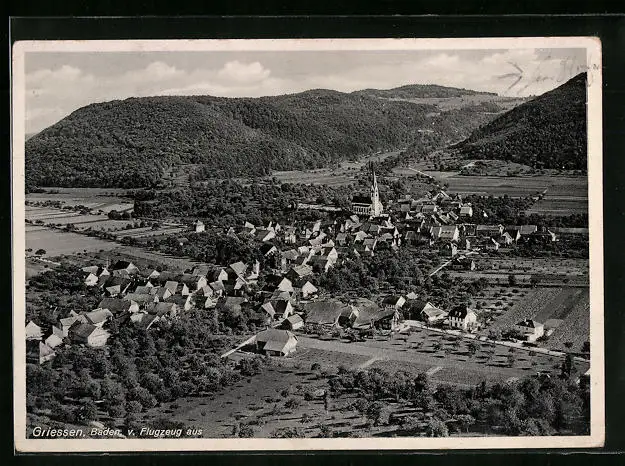 AK Griessen /Baden, Teilansicht mit Kirche, Fliegeraufnahme