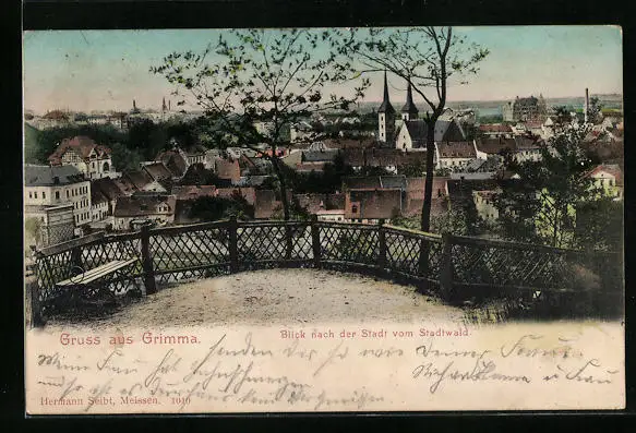 AK Grimma, Blick von der Stadt vom Stadtwald