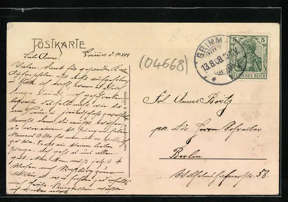 alte Ansichtskarte, gelaufen 1908, guter Zustand