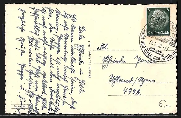 alte Ansichtskarte, gelaufen 1940, Eckknick links oben, guter Zustand