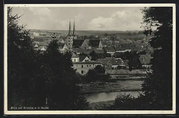 AK Grimma a. d. Mulde, Ortsansicht aus der Vogelschau