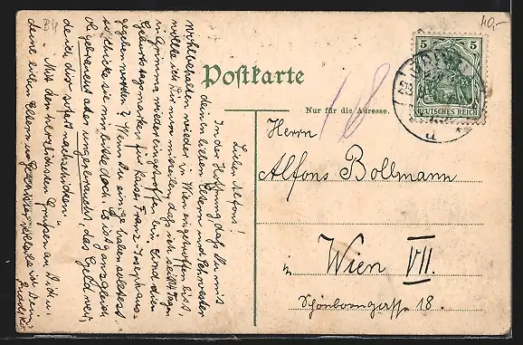 alte Ansichtskarte, gelaufen 1910, guter Zustand
