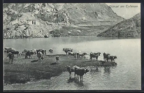 AK Grimsel am Todensee, Ortspartie mit Kühen