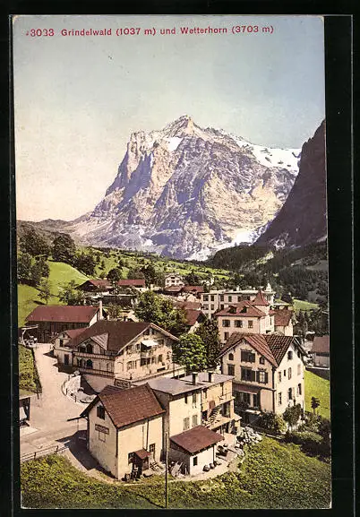 AK Grindelwald, Ortsansicht gegen Wetterhorn