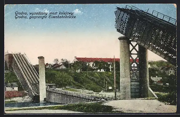 AK Grodno, Die gesprengte Eisenbahnbrücke