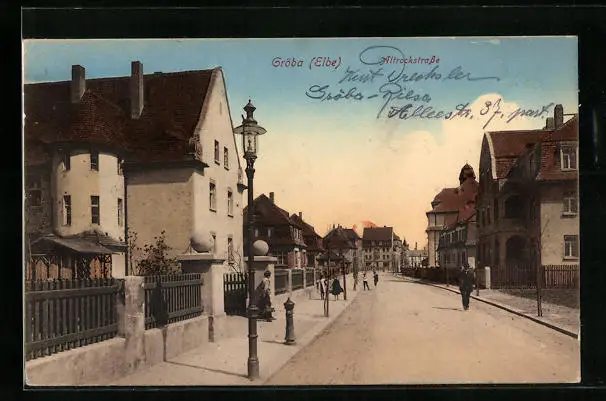 AK Gröba /Elbe, Abendstimmung in der Altrockstrasse