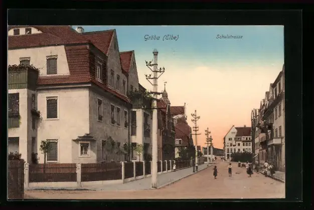 AK Gröba a. Elbe, Blick in die Schulstrasse