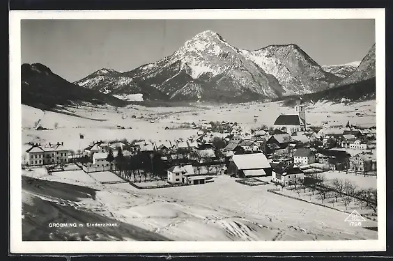 AK Gröbming, Ortsansicht mit Stoderzinken im Winter