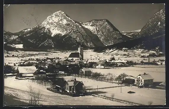 AK Gröbming, Ortsansicht mit Stoderzinken im Winter