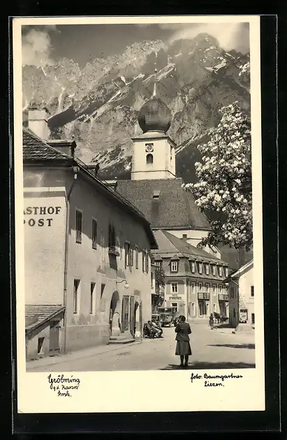 AK Gröbming /Stmk., Gasthof zur Post, Ansicht g. d. Kamm