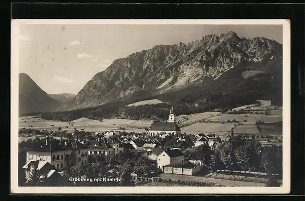 AK Gröbming, Teilansicht mit Kirche und Kamm