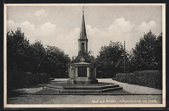 AK Gröditz, Kriegerdenkmal an der Kirche
