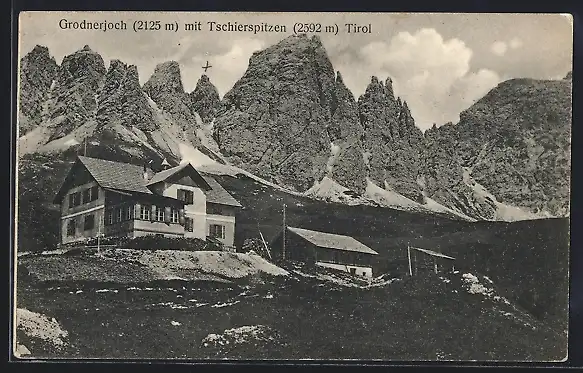 AK Grödnerjoch, Ansicht mit Tschierspitzen