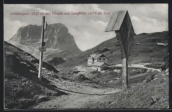AK Grödnerjoch, Hospiz und Langkofel, Flurkreuz