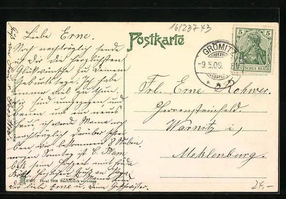 alte Ansichtskarte, gelaufen 1909, guter Zustand