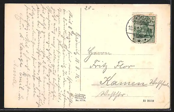 alte Ansichtskarte, gelaufen 1912, Eckknicke li., minimaler Einriss li. oben, guter Zustand