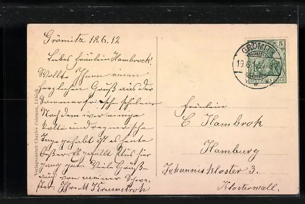 alte Ansichtskarte, gelaufen 1912, guter Zustand