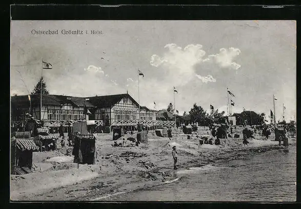 AK Grömitz i. H., Strand mit Villen